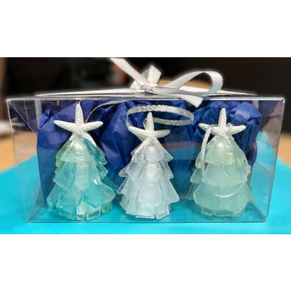 Looking for the perfect holiday gift or unique addition to your Christmas tree? Look no further than our handcrafted 3D seaglass tree ornaments. These ornaments are lovingly crafted by hand and come in multiple colors, allowing you to choose the perfect shade to suit your decor. Not only are these ornaments a beautiful addition to your tree, but they also make great gifts for friends and loved ones. Additionally, these ornaments can be customized with name drops to represent your location, making them a special keepsake or souvenir. Bring the beauty of the sea into your home this holiday season with our stunning seaglass tree ornaments.