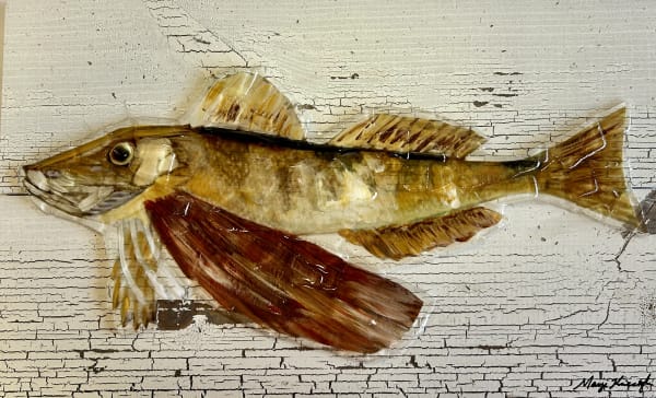 Introducing "Robin," the Sea Robin brought to life in limited edition hand-painted artwork by Marji Knecht. These whimsical pieces feature vibrant colors and a 3D look, thanks to being covered in clear sea glass and resin. Each artwork is unique, but the design will only be reproduced 25 times before being discontinued, ensuring exclusivity for collectors. Don't miss the chance to own a piece of Marji Knecht's charming and colorful coastal artistry with "Robin"