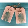 Envision a charming seaglass heart, glistening with hues of ocean blues and greens, meticulously arranged to form a beautiful and unique piece. Each piece of seaglass is smooth and carefully selected, creating a mosaic effect that captures the essence of the sea. This delicate heart is mounted on a white wooden gift tag, providing a striking contrast that enhances the vibrant colors of the seaglass.