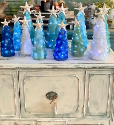 12 Inch 3-D Seaglass Lighthouse. These are customized to your local lighthouse and have a lighted beacon top.