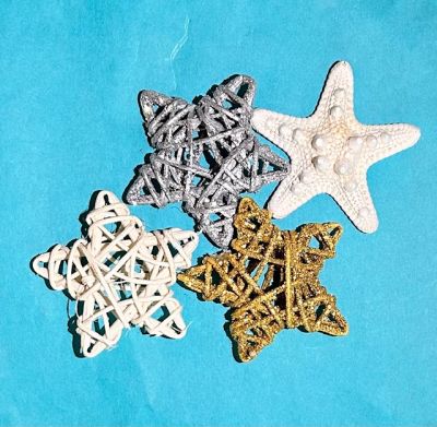layered seaglass and a choice of a real starfish or a natural rattan star topper.