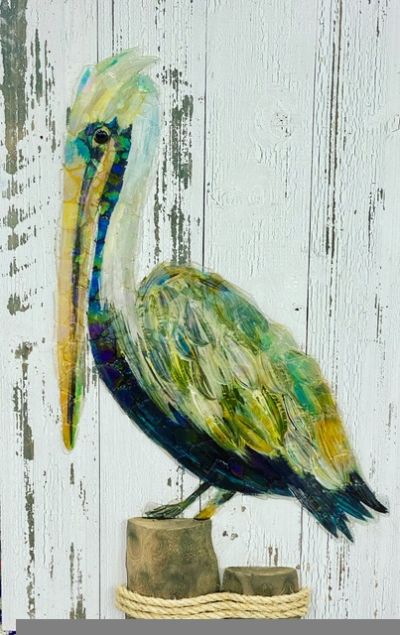 Hand Painted Seagull on a weathered plank board that is covered with clear Seaglass and then resined to create a unique 3D visual art. No two pieces exactly the same, color scheme will vary and all pieces signed by artist.