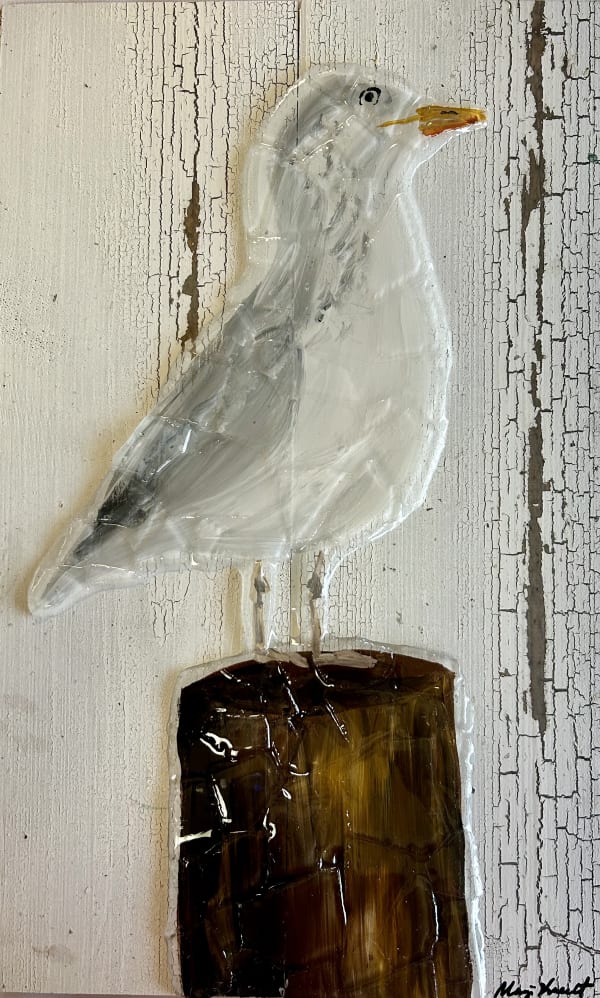 Introducing "Suzi," the Seagull brought to life in limited edition hand-painted artwork by Marji Knecht. These whimsical pieces feature vibrant colors and a 3D look, thanks to being covered in clear sea glass and resin. Each artwork is unique, but the design will only be reproduced 25 times before being discontinued, ensuring exclusivity for collectors. Don't miss the chance to own a piece of Marji Knecht's charming and colorful coastal artistry with "Suzi"